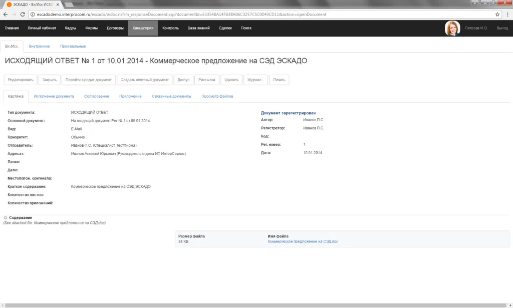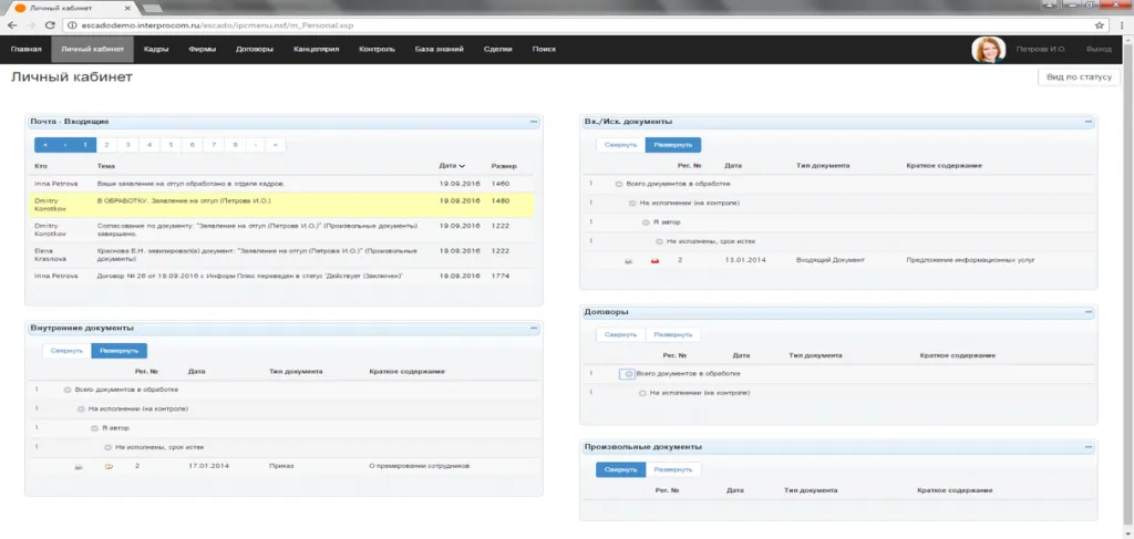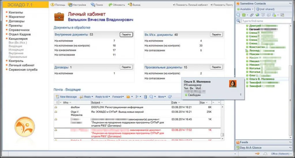 Примеры экранов различных модулей и карточек документов в ЭСКАДО (web-клиент)