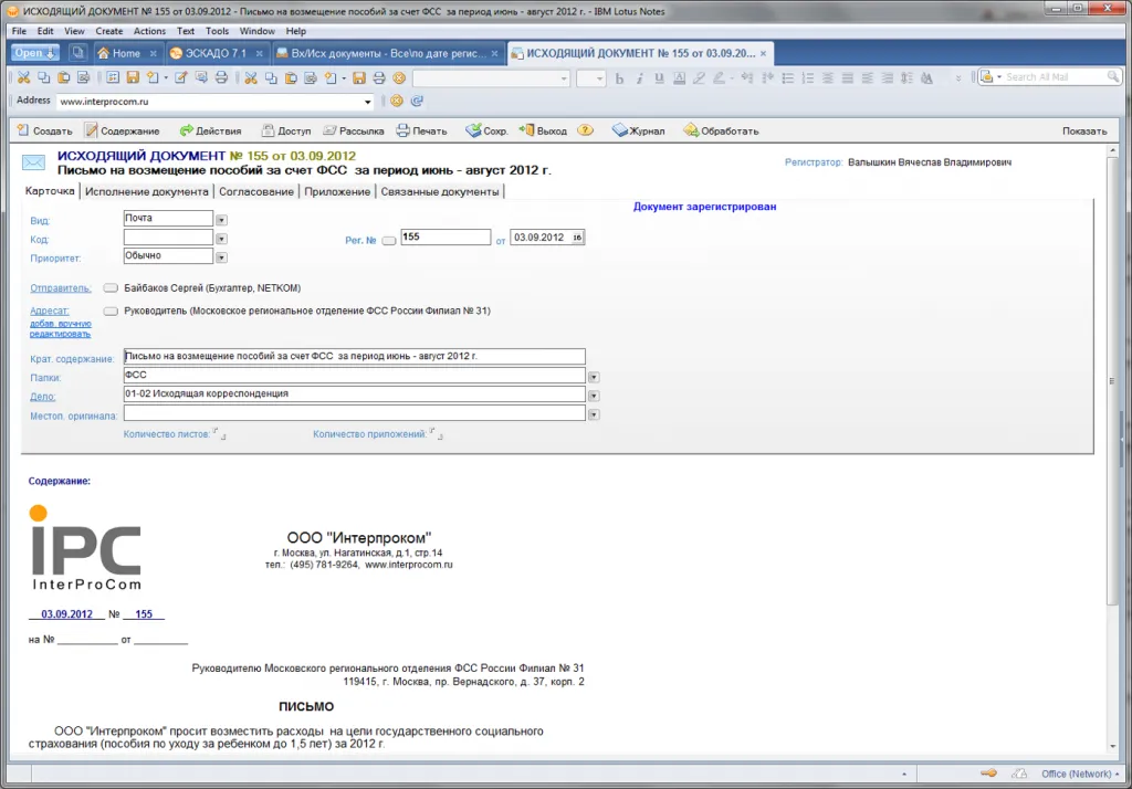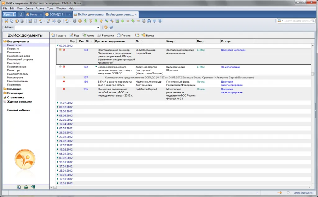 Примеры экранов (толстый клиент IBM Lotus Notes)