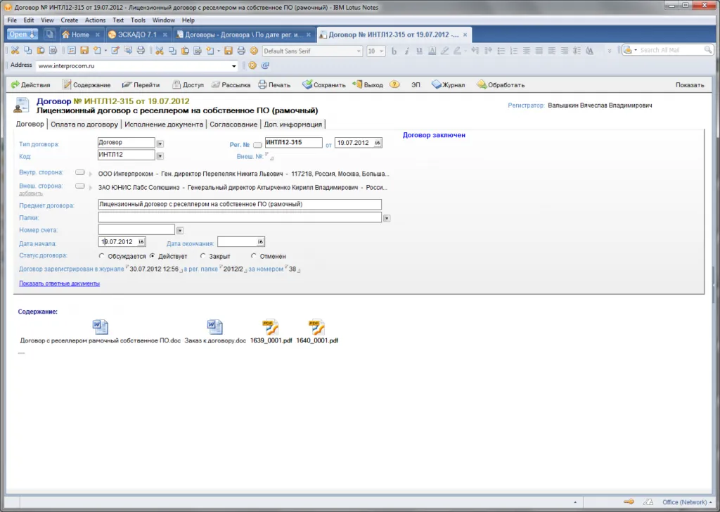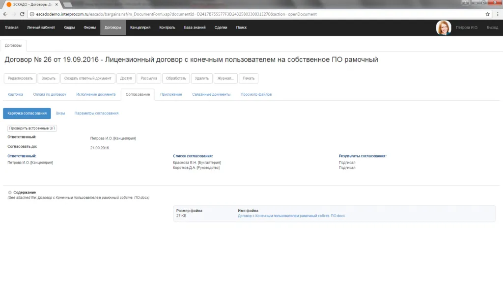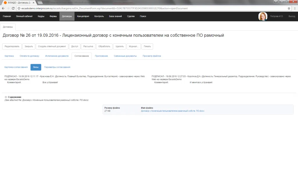 Договор. Согласование. Результаты согласования.
