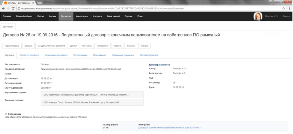 - создание и ведение договоров;