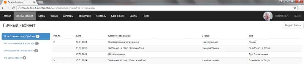 Настройка этапов обработки для каждого типа документов, реализованная в Системе, позволяет организовать движение документов в организации в соответствии с принятой технологией работы.